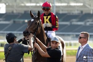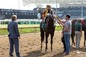(Ragtime gets splash time after winning the G3 Dogwood Stakes at Churchill Downs on Saturday / All Photos by Holly M. Smith)