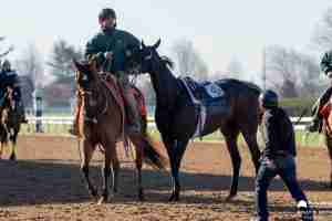 I’ve been waiting patiently for my great friend and ally, Holly M. Smith, to finish up her “other work loads” to break free and get out to the racetrack. She is so good at capturing the heart of the horse and the soul of the admirer. And, on Saturday, a beautiful day in this Bluegrass, she was able to catch a wonderful sun rise and a horse set, or two.