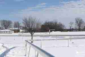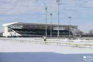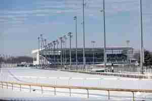 A few days back, I asked my great friend and ally, Holly M. Smith, if she could sneak out to my favorite racetrack in the entire world and capture some of the grounds sparkling and shinning underneath a blank of God’s own frozen teardrops, disguised as snow.