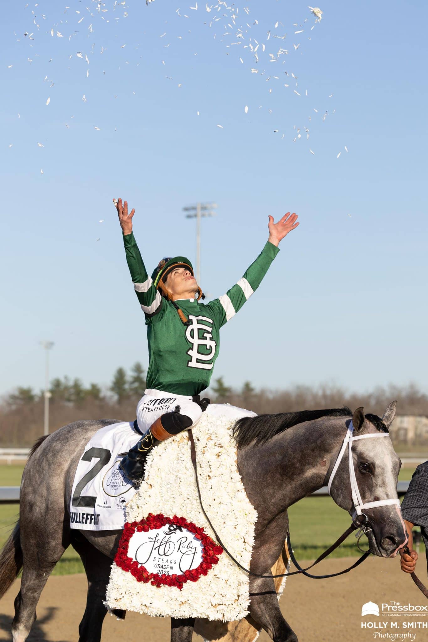 (Fulleffort and rider Irad Ortiz, Jr. after winning the G3 Jeff Ruby Steaks at Turfway