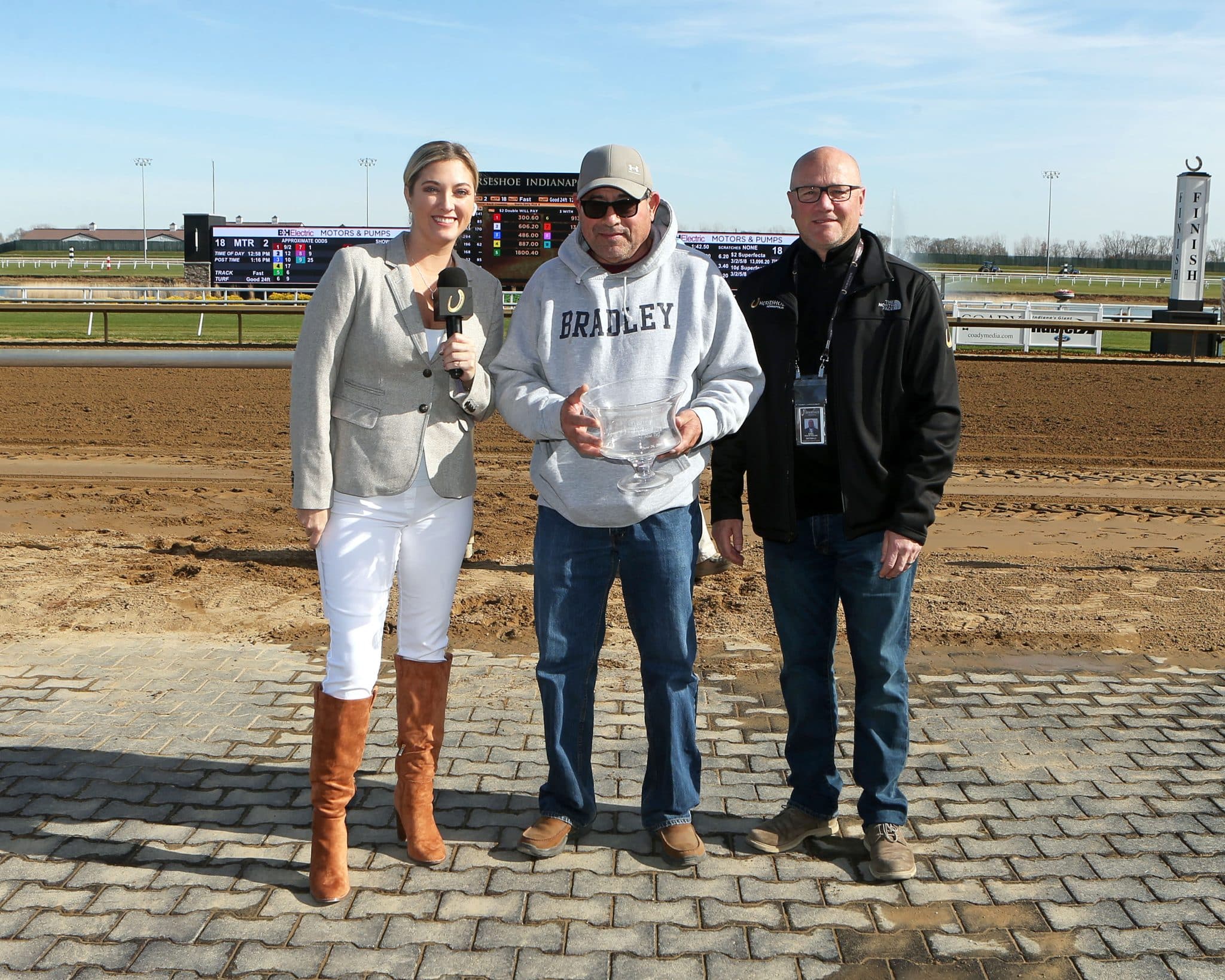 (John Haran accepts winning trophy for leading owner at Horseshoe Indy in 2025 / Photo