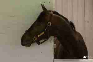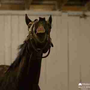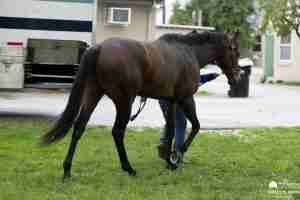 (Coal Battle exits the van after arriving at his new headquarters — Churchill Downs / All Photos by Holly M. Smith)