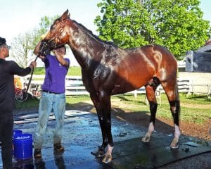 Among other workers for DeVaux Friday morning were two horses also expected to be in the starting gate on May 2 on the Kentucky Derby undercard.