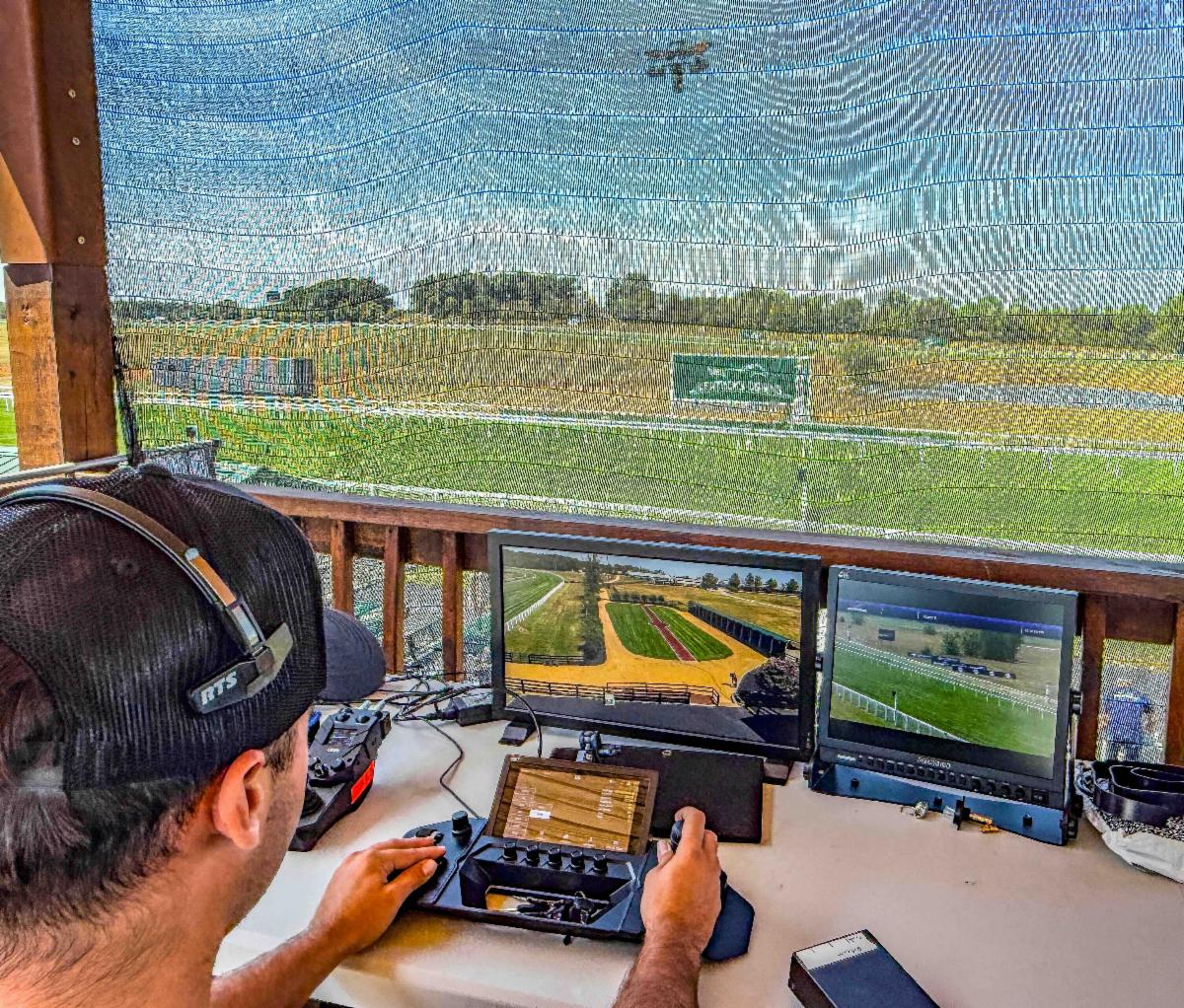 “It’s going to actually be the live production pan camera for the backstretch and follow the horses above and right next to them,” Loignon said. “That’s going to take the horses from just after gate break through the beginning of the far turn. At which point, we’ve added another camera to the outside of the track at the half-mile pole in the corn field. That’s going to take them through the far turn, then we pick up the cable camera.”