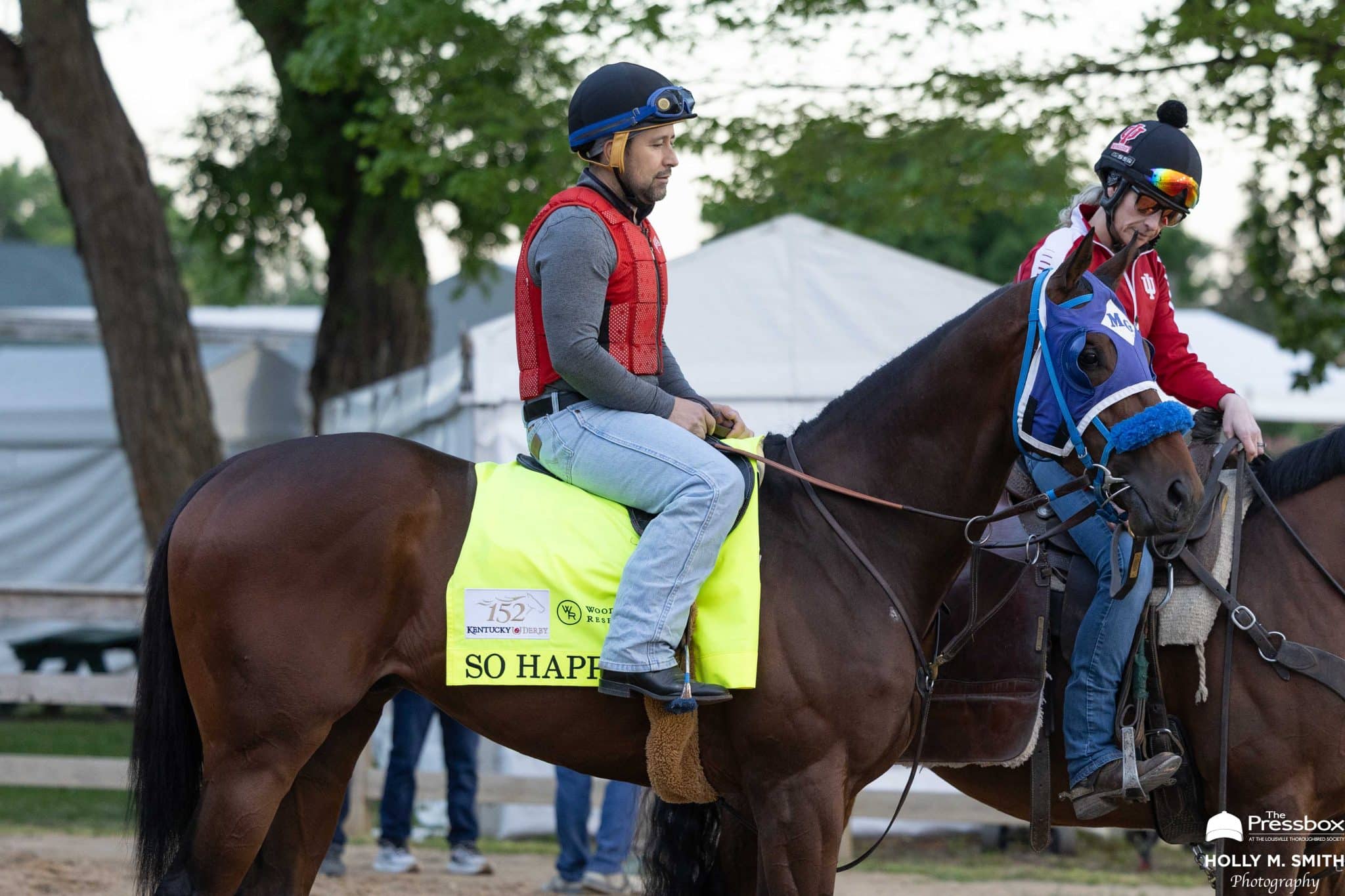 California-based (by way of the Pacific Northwest, hence his Seattle Seahawks gear) trainer Mark Glatt was at Churchill Downs Thursday morning to watch So Happy — his first Santa Anita Derby winner — train for the Kentucky Derby. “He was a horse that would lose a little bit of focus, maybe not pay attention,” Glatt said. “We kind of call it going through the motions in the morning. But we always saw a nice-strided horse that just did what he had to do. He didn’t ever wow you in the morning, prior to his first race.” So Happy now is 3 for 4.
