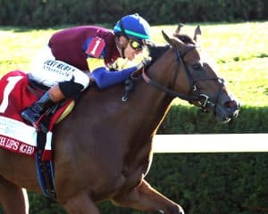 “She started in Ireland (last year) and then we brought her here, which is part of our program’s plan. She just has taken a step forward, step forward, every single time. In her last seven starts (including today’s race), she’s been first or second, every single one. Today was the icing on the cake. Again, we’re just very lucky.”