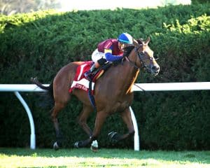 “Surprisingly, we did (gain confidence from her runner-up finish at today’s distance in the Aug. 16 Del Mar Oaks-G1 Presented by Keeneland Sales), because that was always in the back of our minds, that maybe it was as far as she wanted to go. But I think she went against the grain, and it seems she has no problem going the mile and an eighth. It was fantastic. (Her ability to lay off the pace gives us options) without a doubt. It opens a big door for her, especially for next year, because we always thought this filly was going to be a good 4-year-old. It’s fantastic to win a Grade 1 with her.”