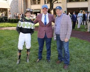 “First, I’d like to give credit to the connections. I’m so thankful for this opportunity. She’s a really nice filly and a lot of fun to ride. I’m thrilled for the owner (Philip Griesinger of Double 22 Stables) — his first win on his own — so it’s a big opportunity for them. The filly is very push-button. She likes to do her own thing early and I kind of left her alone, but by the time we got to the three-eighths pole she was well under herself and she’s got a really nice turn of foot. I chirped at her about the three-eighths pole, and she perked up nicely. From then on I was pretty confident.”
