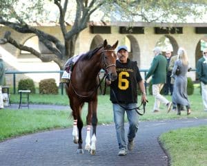 “Would I have thought she was this kind? No. I’m going to have to say no. She did work good going into the first race, but she didn’t train the way she trained coming into this race. I was quite comfortable (with how far back she was in the race) because they were all going, and she was traveling—she looked good to travel. I watched her work, and her turn of foot to finish is really good.”