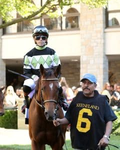 (A Fine Chardonnay wins the Myrtlewood at Keeneland on Friday / All Photos by Coady Media)