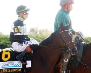 Irad Ortiz Jr. (rider of runner-up and beaten favorite On Time Girl)