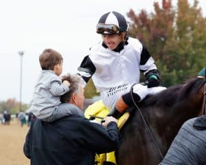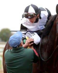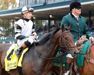 “It’s been a great ride. At Kentucky Downs (winning the Ainsworth Franklin-Simpson-G1 Sept. 6), a $2 million pot and a Grade 1, and then to come over here and get this one back to back — it’s been a heck of a ride. Let’s put it this way: I’m glad the Breeders’ Cup is here next year. We just were talking about it before today, even just that he would take us, and if he’s doing well, maybe we could have a shot at it next year. I don’t know why we don’t. He just gets better all the time. He’s a big, gorgeous horse. Congrats to the Balls: (owner) Mrs. (Mira) Ball (of Donamire Farm) and (son and daughter-in-law) Mike and Kay Kay. He’s a homebred; they raised him, so give them all the credit.”