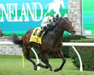 Troubleshooting, who won the $2 million Ainsworth-Franklin Simpson (G1) at Kentucky Downs on Sept. 6 in his last start, is a Kentucky-bred out of Into Trouble, by Into Mischief. He earned $339,450 for today’s win to boost his bankroll to $1,735,106 with four wins in 10 starts.