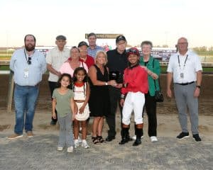CJ’s Storm paid $57.00 for the win. The five-year-old graduate of the ITOBA Fall Mixed Sale as a $6,200 yearling purchase earned his fourth win in seven starts for 2025. He added the To Much Coffee title to the William Henry Harrison, earned earlier in the meet. The Storm’s Eye gelding is owned by Haran Thoroughbreds and Janet and Charles Watt. The Watts travel several hours from their home in Southern Illinois each time CJ’s Storm races, and Charles always wears his CJ’s Storm black hat.