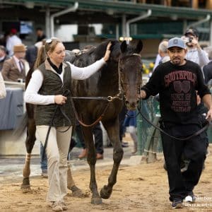 (Thorpedo Anna makes one last turn at Churchill Downs’ paddock / All Photos by Holly M. Smith)