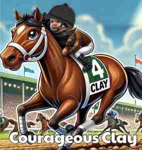 Down the backside, a group of horses squeezed, bumped and leaned into Courageous Clay, who was close to the rail. But he didn’t seem to care. He ran on. Never hurrying. Never wavering. Just like a pro.