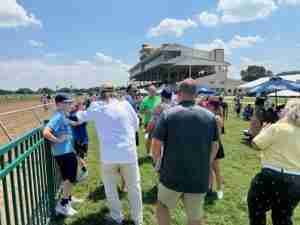 “Hannah and I can’t tell you enough how much this means to our family,” Brandon Goodwin said, looking me straight in the eye as the horses got their final preps before the race. “This allows our family to get away for a day and enjoy life outside the hospital. But it also gives us hope that Clay will someday be well enough to come and watch his namesake run, too.